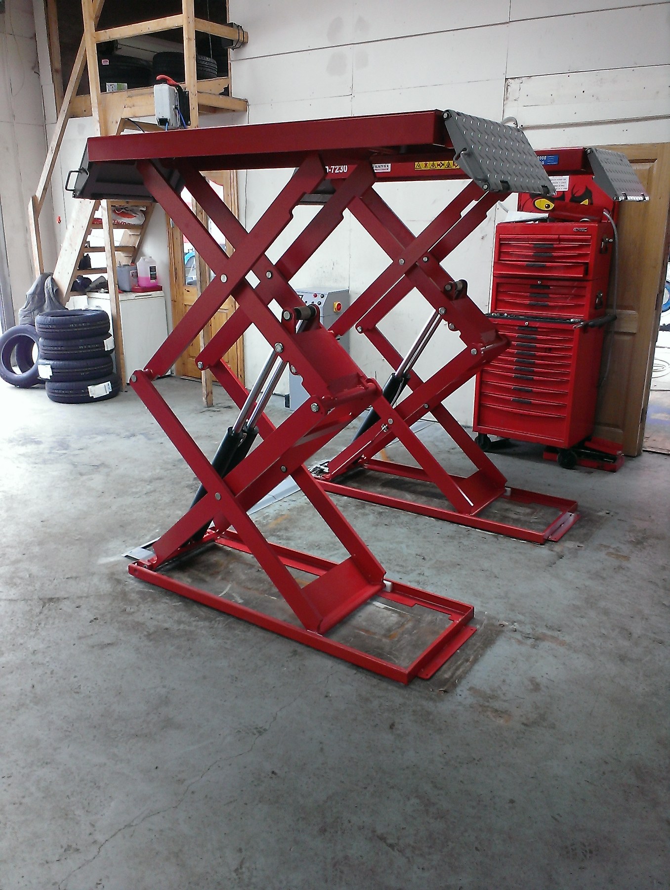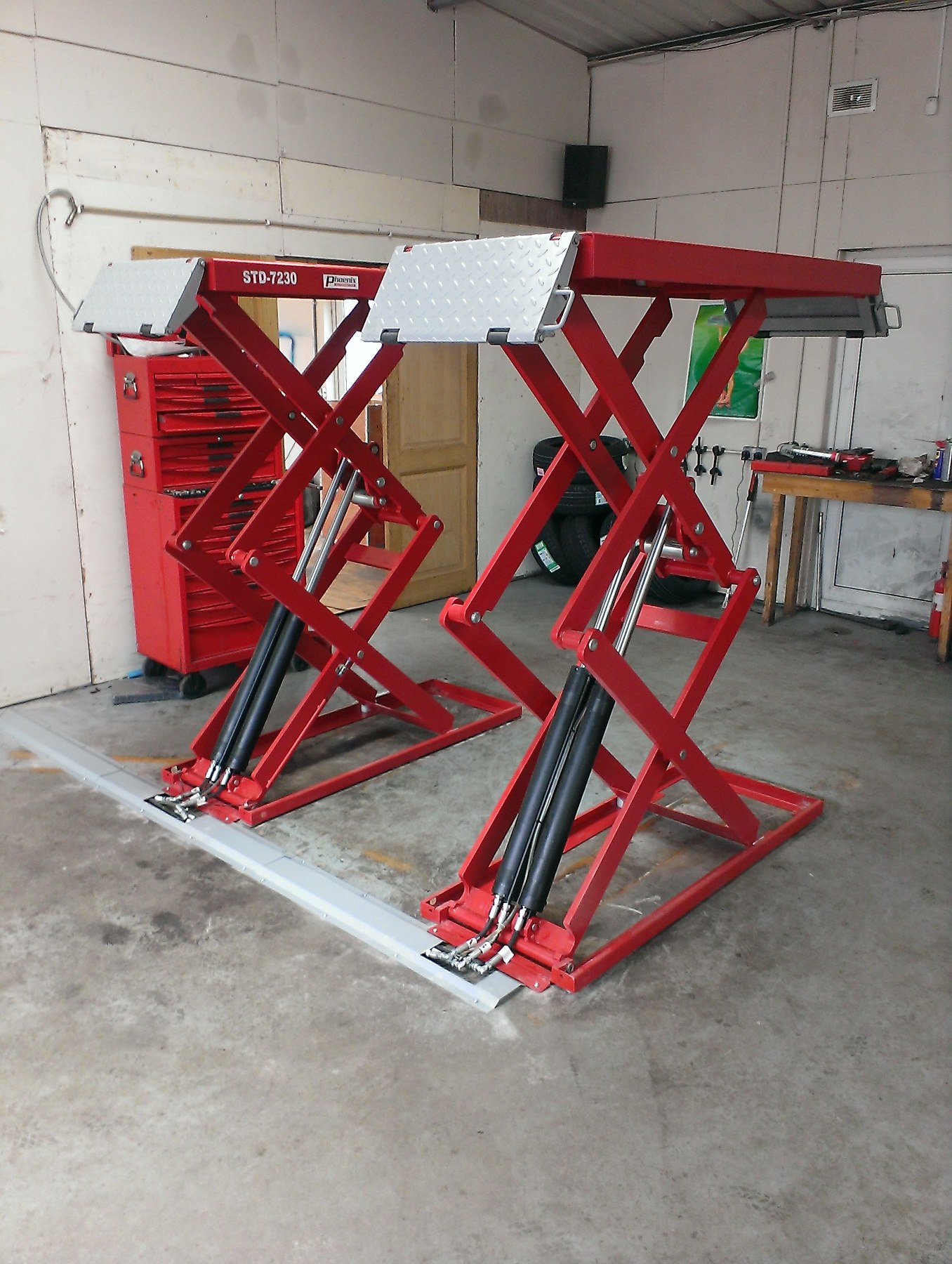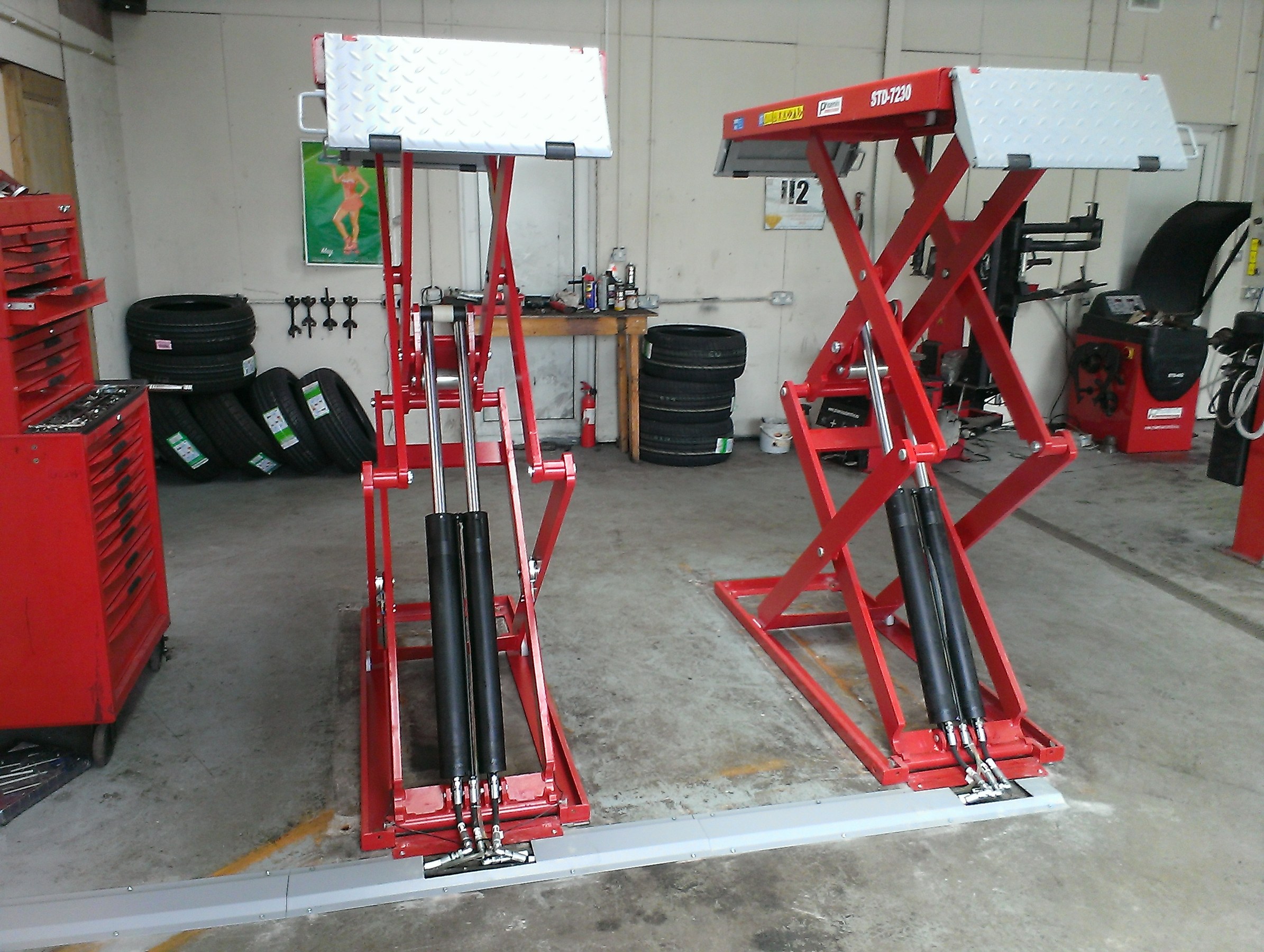 Installation of an Accu-Track 4 wheel laser alignment system, Cemb ER10 wheel balancer, PA-7230 3 ton on floor scissor lift, PA-6140D 4 ton 2 post lift, PA-6150D 5 ton 2 post lift, Apac wheel alignment 4 post lift. One of our best local customers !