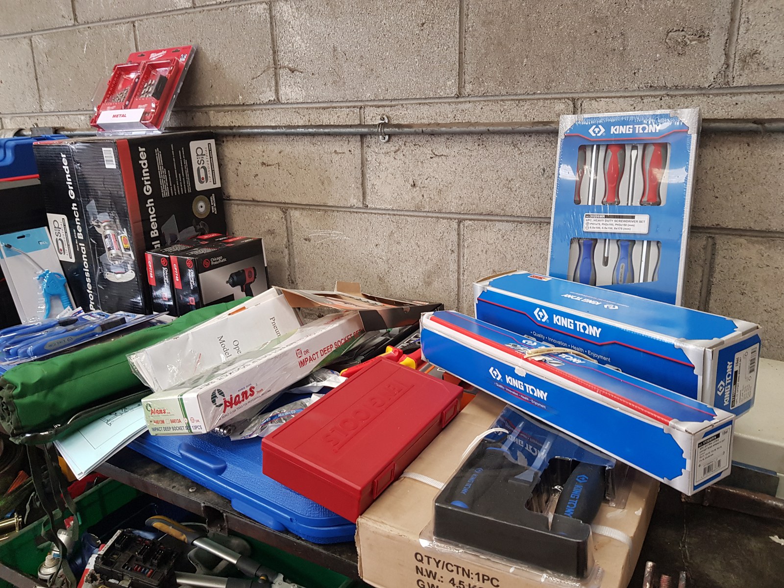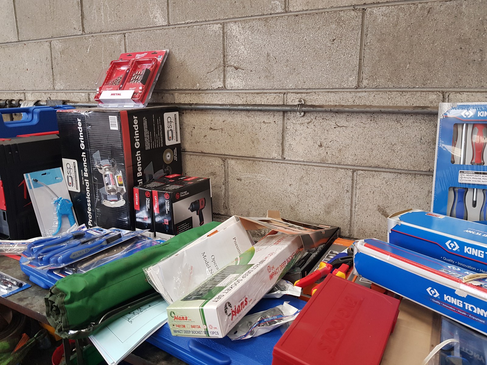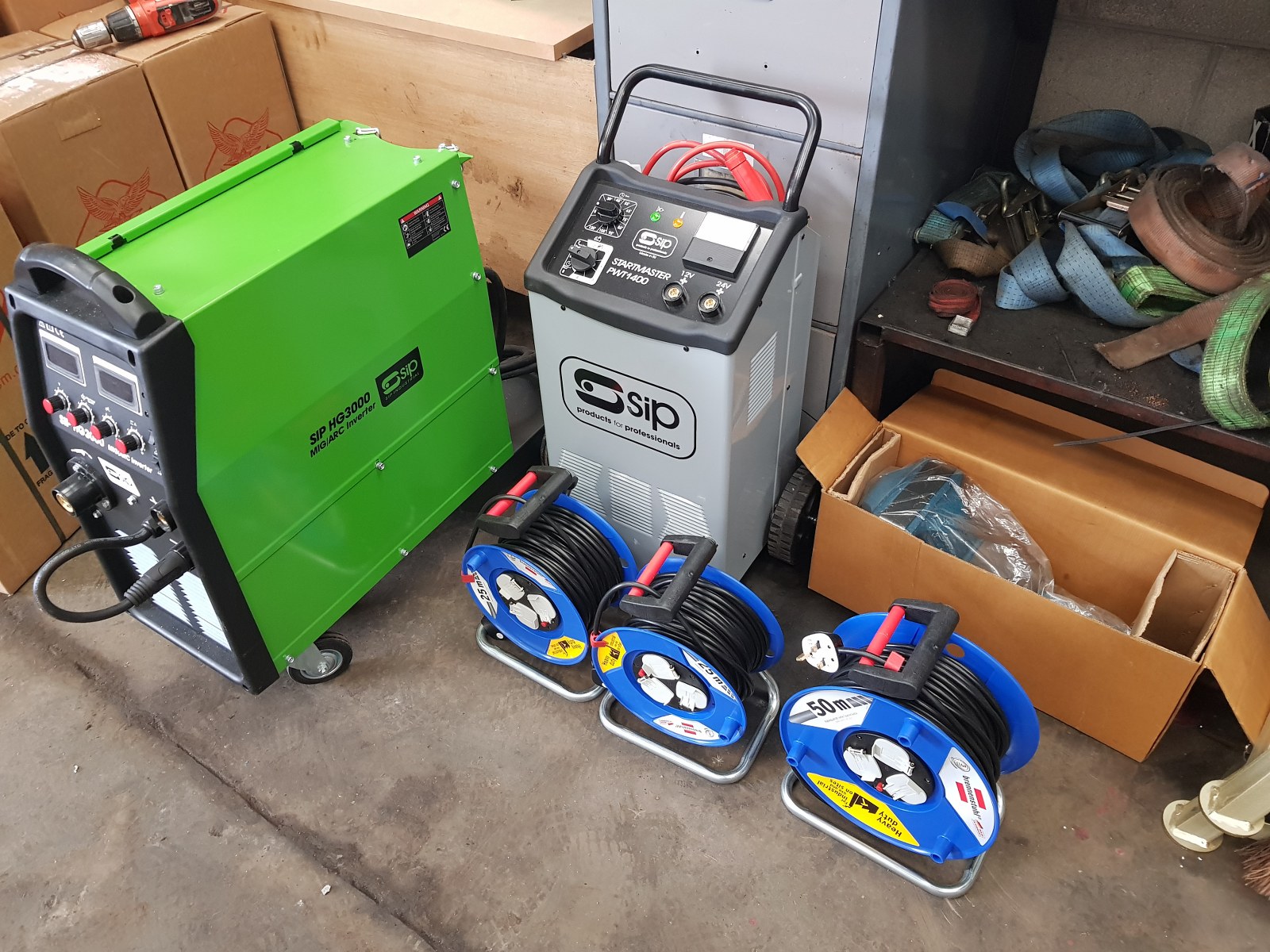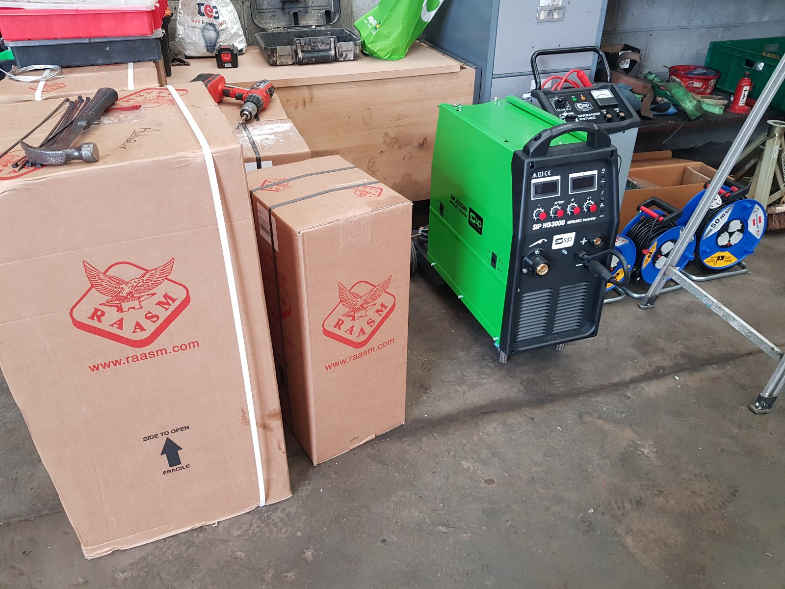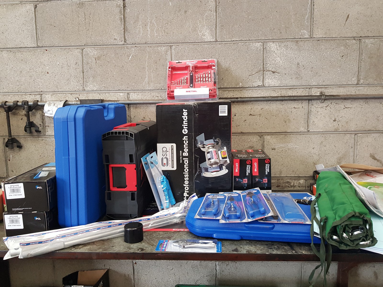 Install consisting of 2 x PA-6240TH 4 ton clear floor 2 post lifts, 1 x PA-6140D 4 ton 2 post lift, Cemb ER80 3D wheel balancer, PA-7226IT tyre changer and a selection of hydraulic tools and equipment, 50 ton press, Bahco trolley jacks, Teng Tools toolchest, oil drainers, Raasm products, welders, air lines and King Tony hand tools.