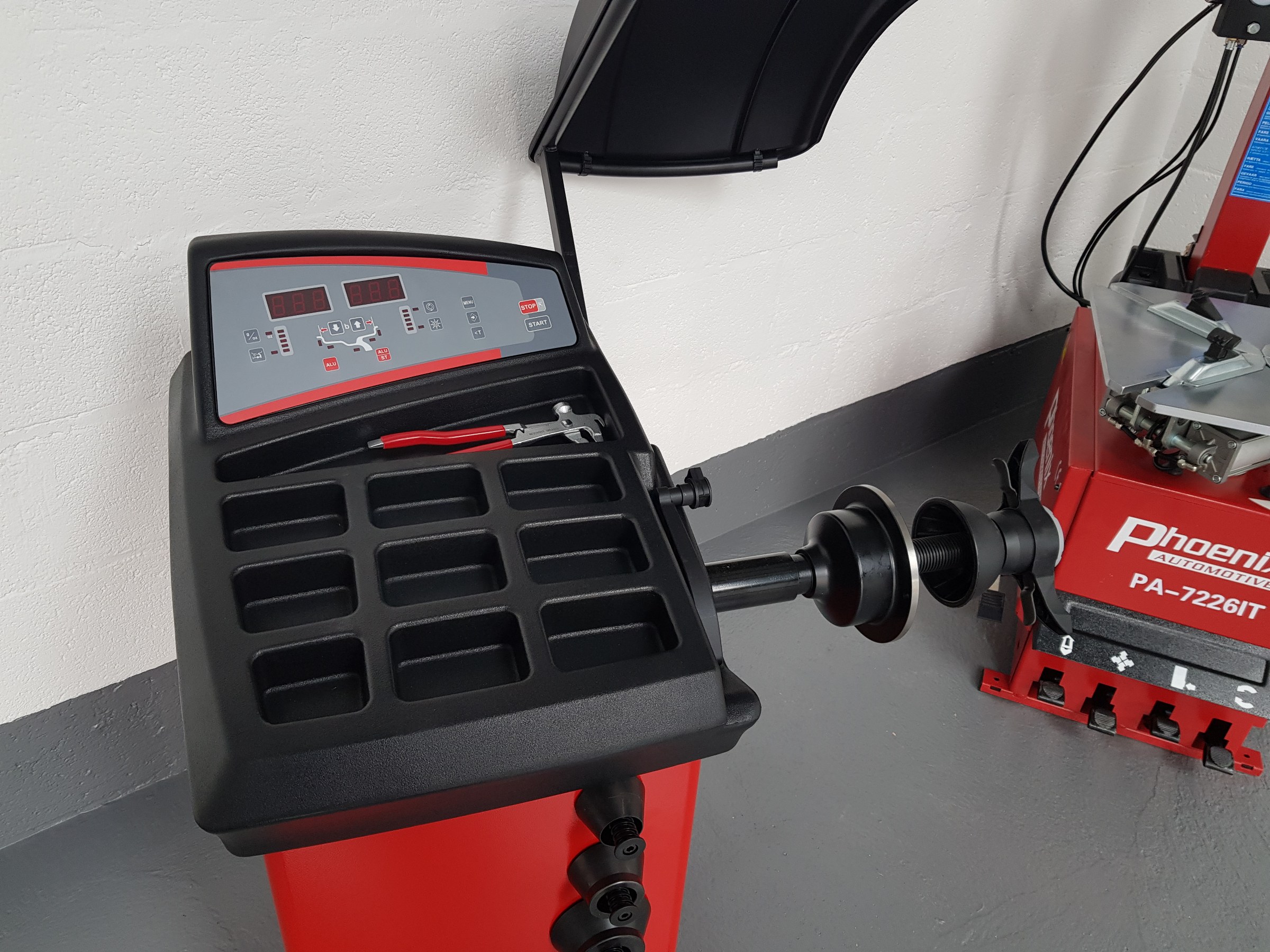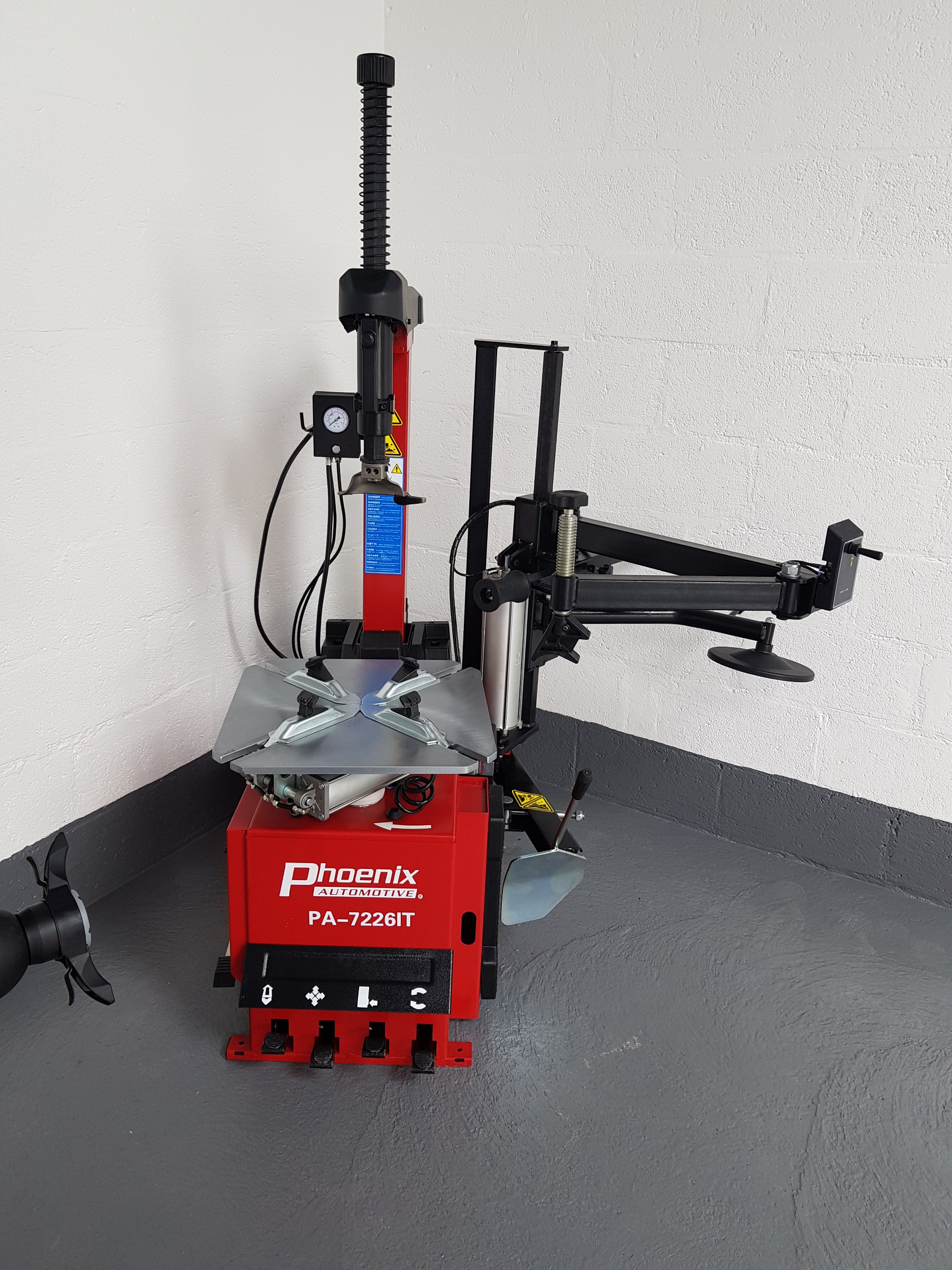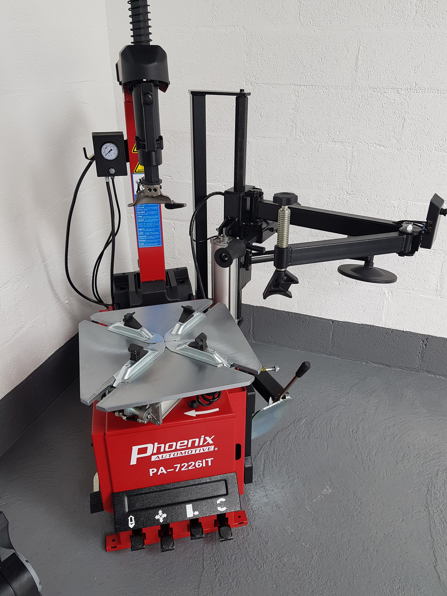 Cemb K9 semi automatic wheel balancer, Phoenix Automotive PA-7226IT tyre changer and a Phoenix Automotive PA-6140D 4 ton 2 post lift installed for Direct Auto Parts in Kilkenny.