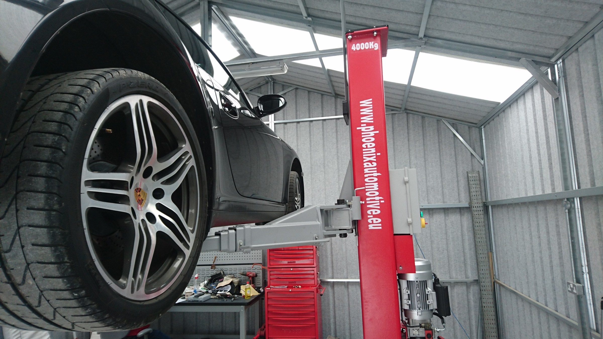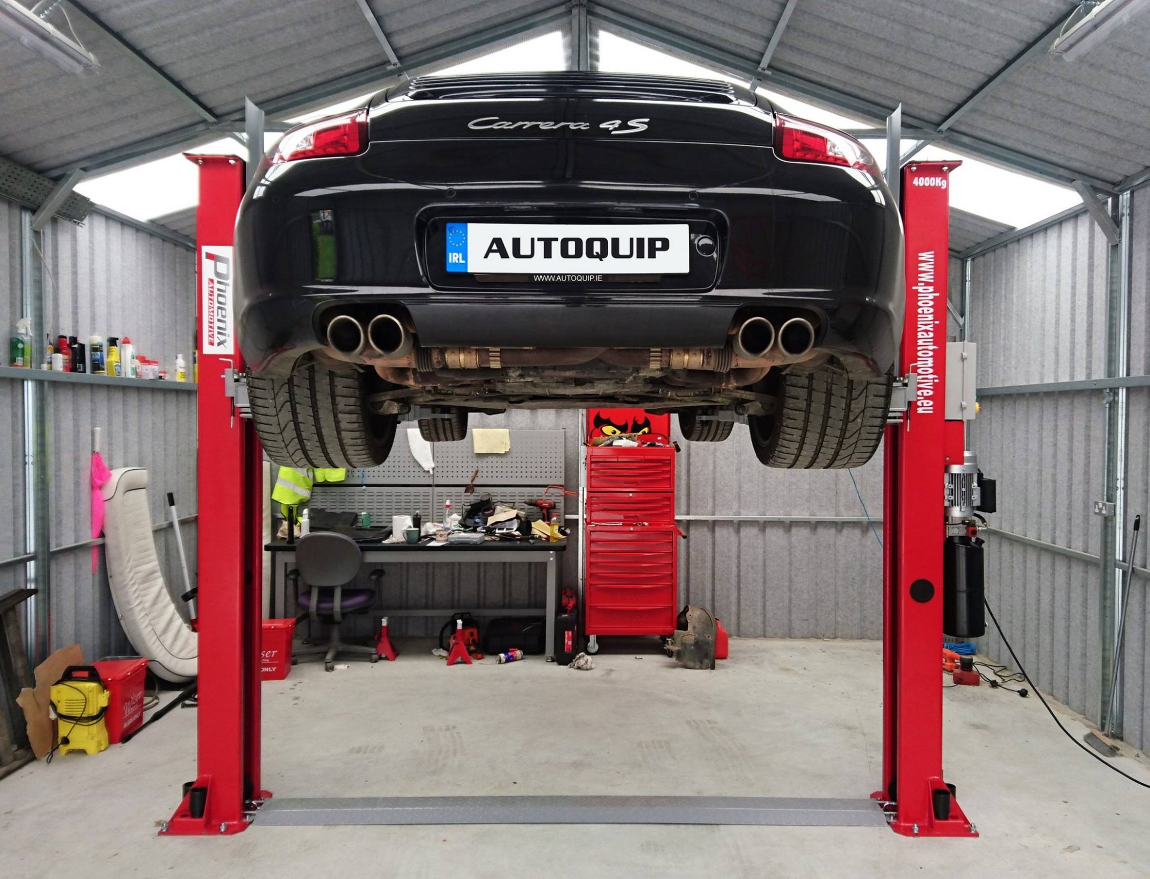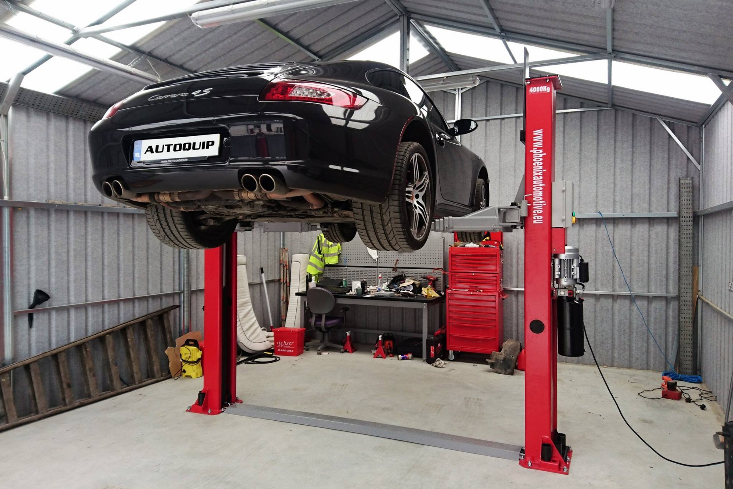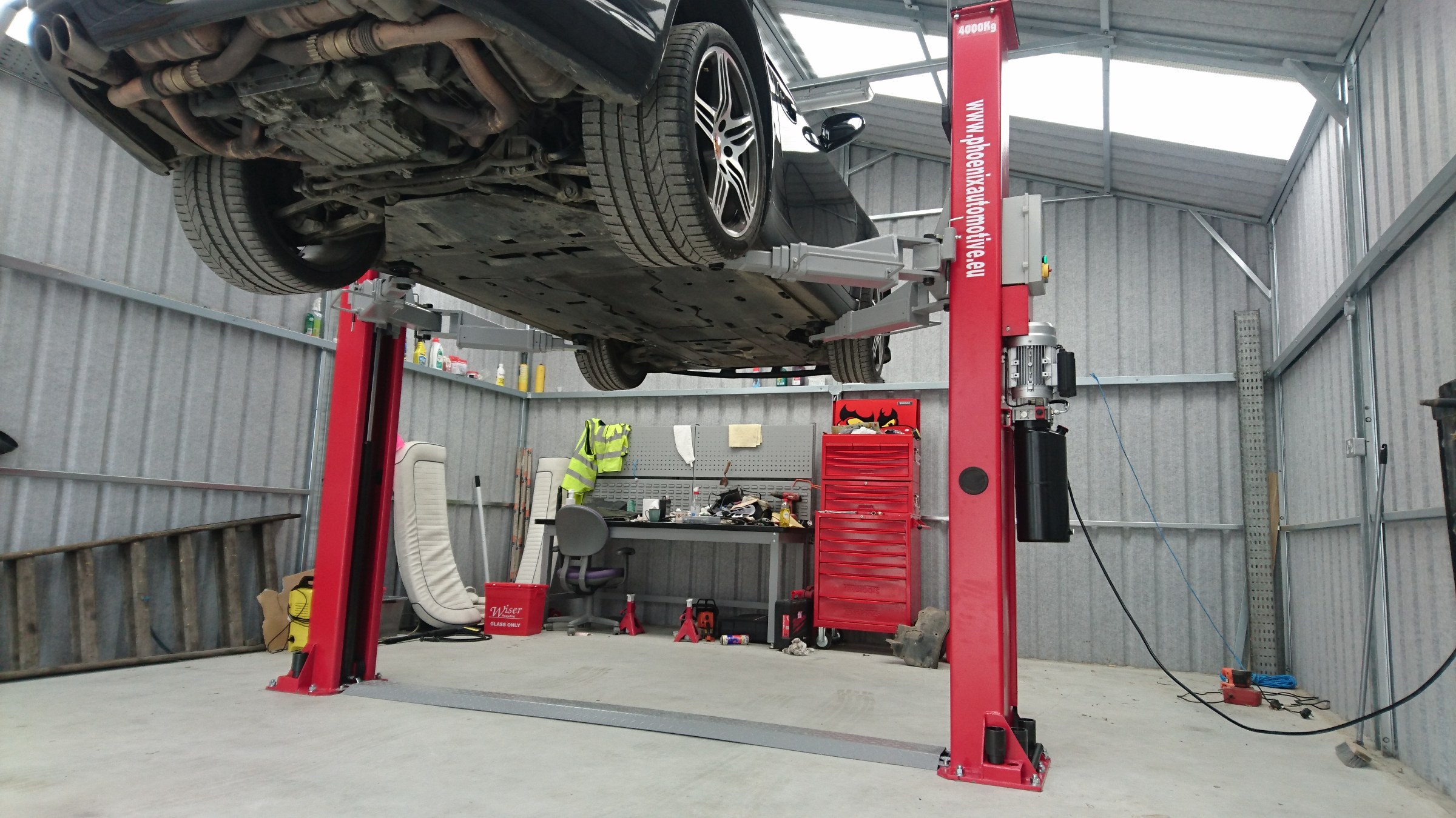 Phoenix Automotive PA-6140D 4 ton 2 post lift installed for a private garage for his Porsche.
