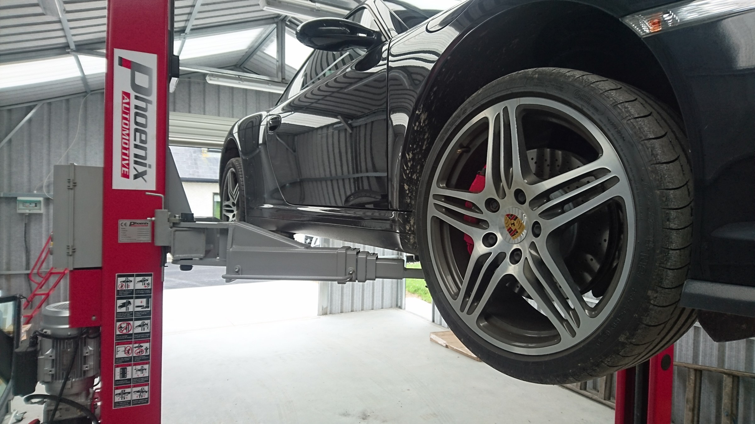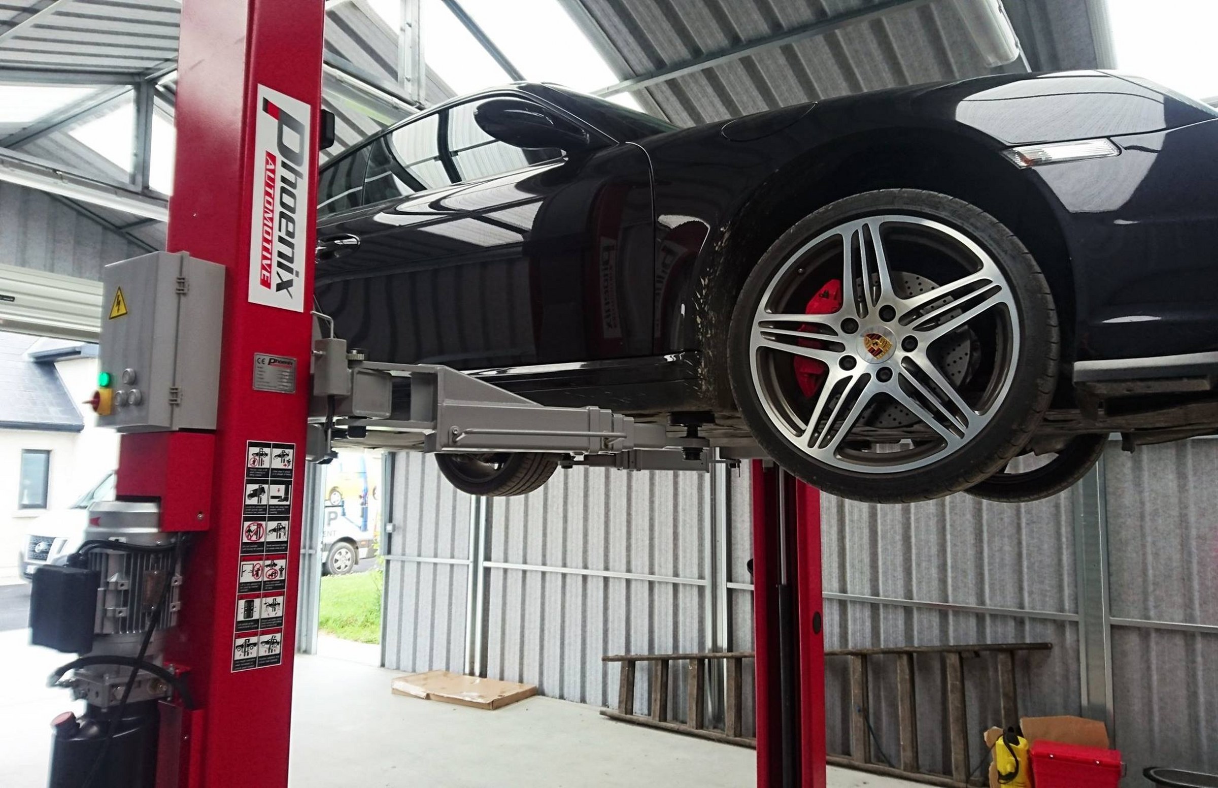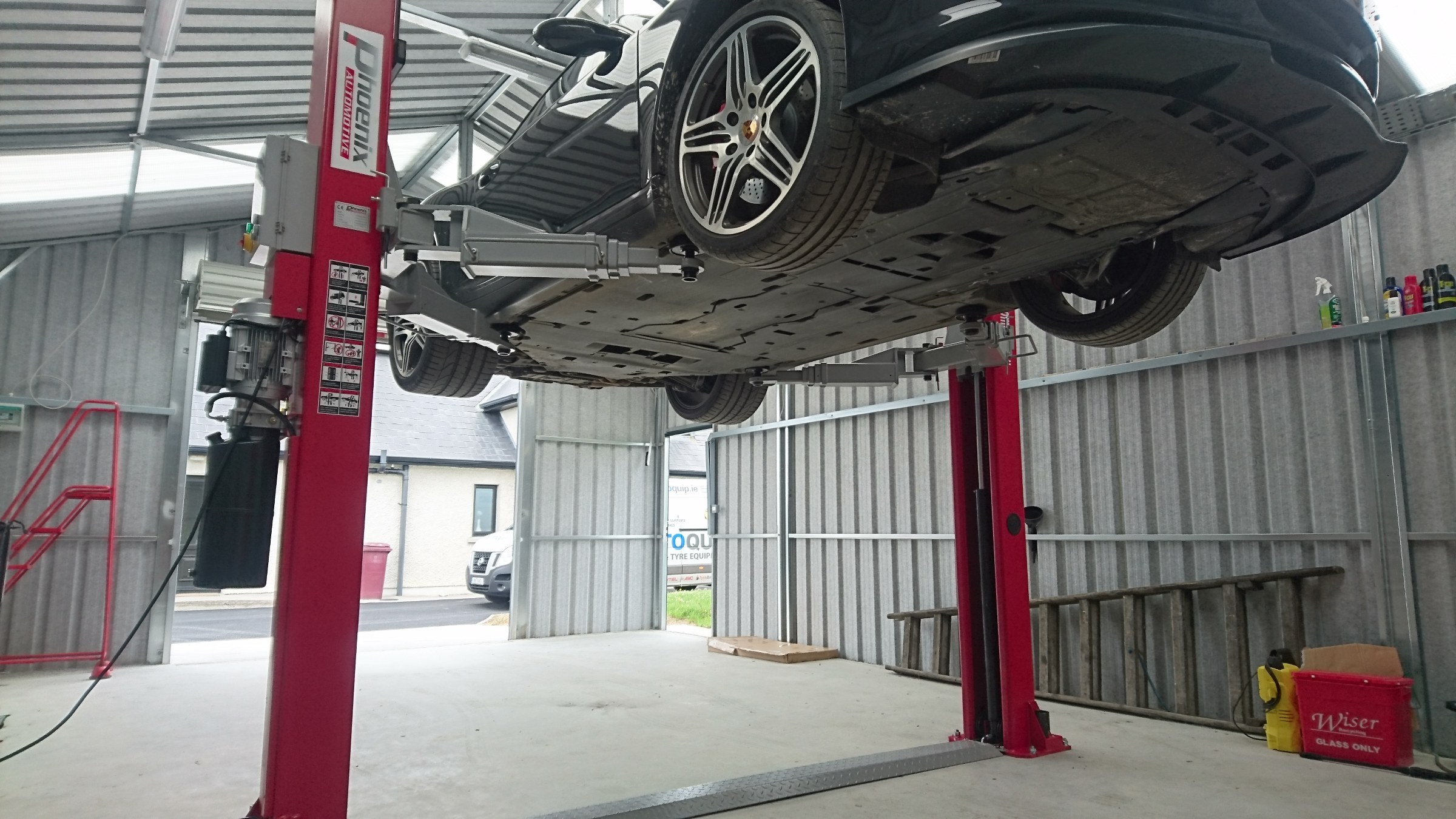 Phoenix Automotive PA-6140D 4 ton 2 post lift installed for a private garage for his Porsche.