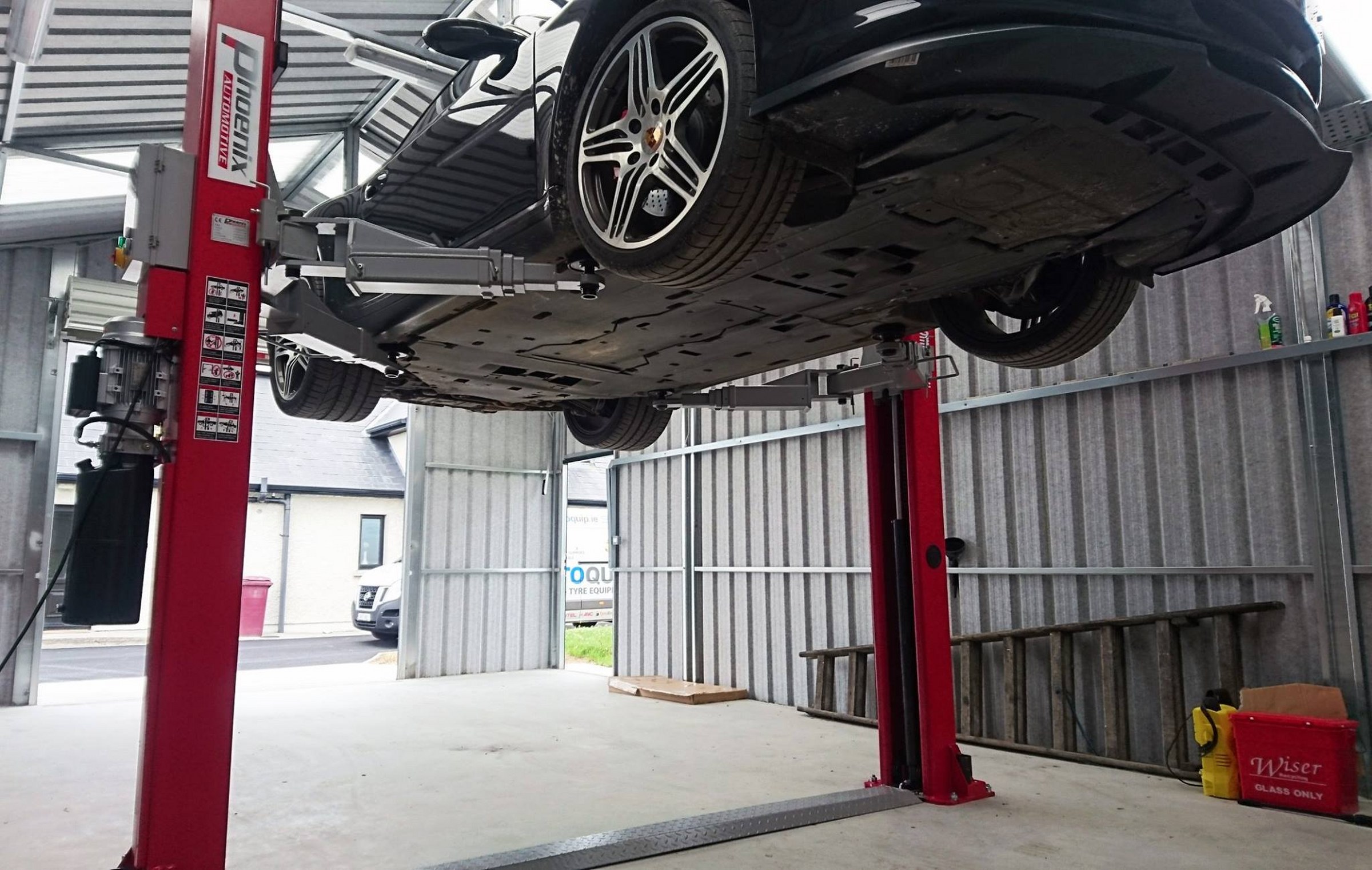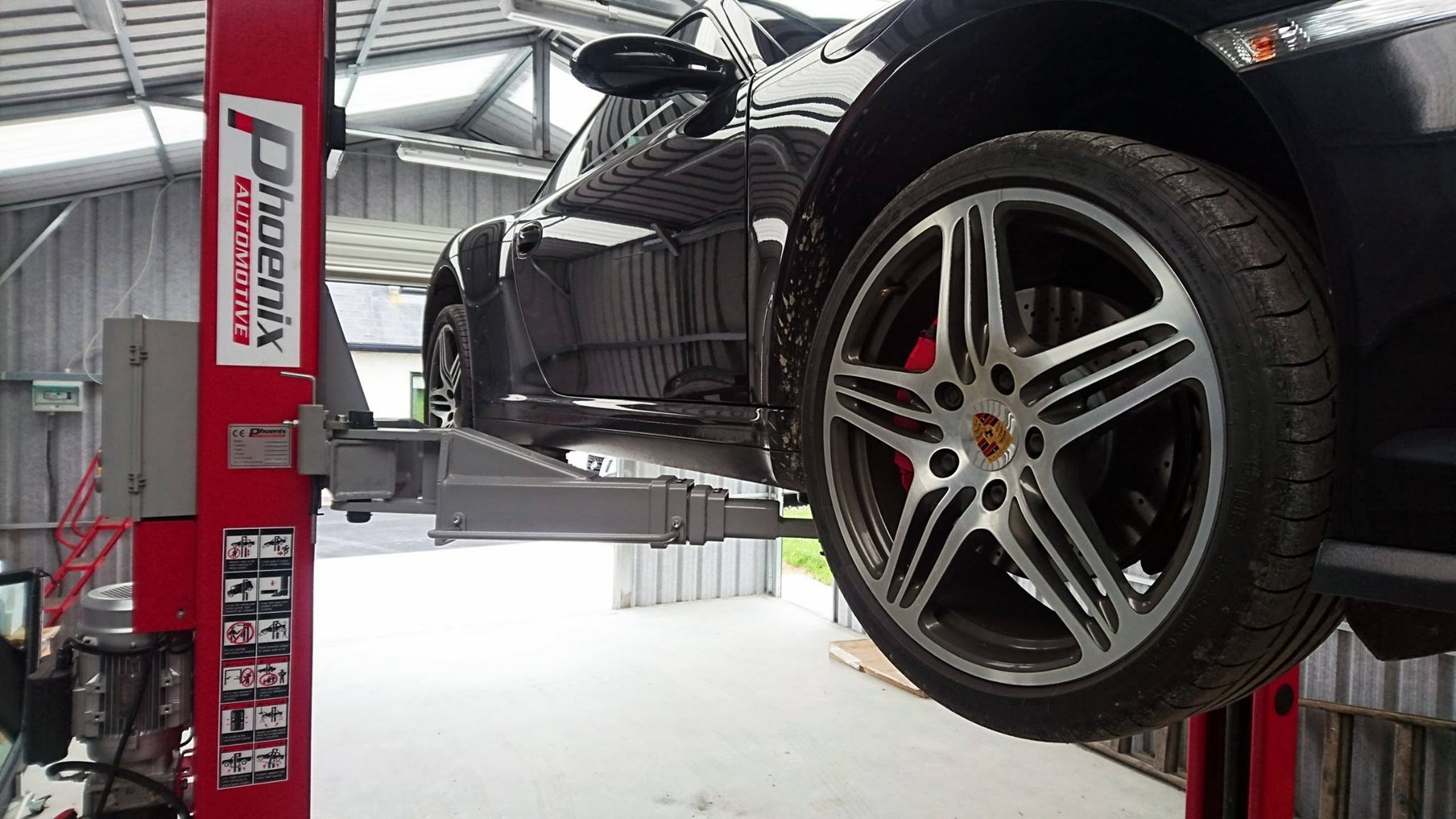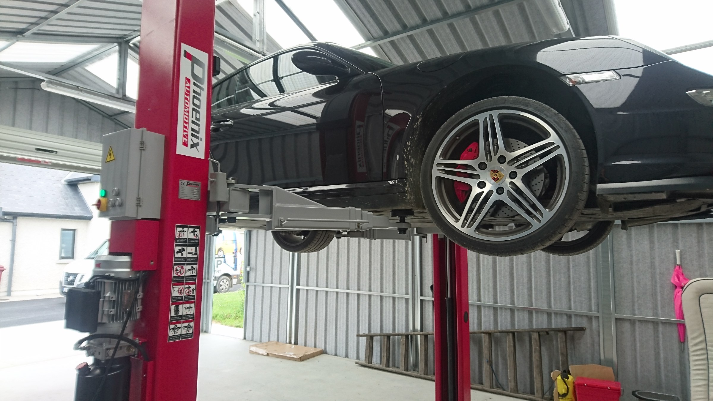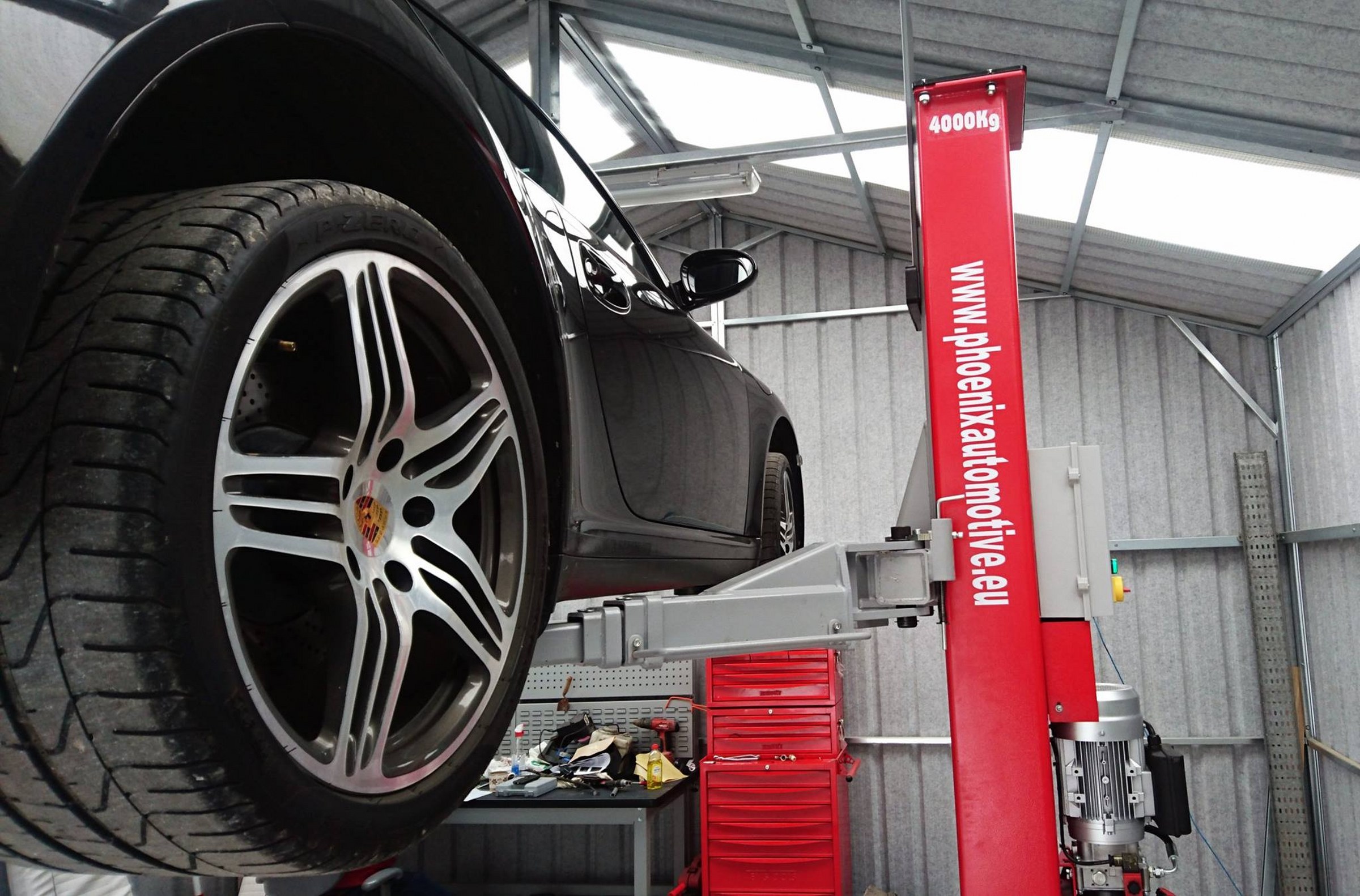 Phoenix Automotive PA-6140D 4 ton 2 post lift installed for a private garage for his Porsche.
