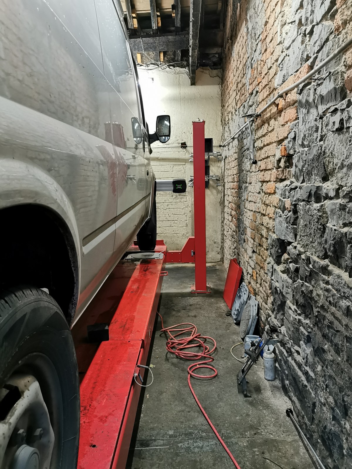 Cemb DWA2500 3D computerised wheel alignment system installed for Seamus McGrath Tyres & Servicing, Limerick. This was a tight squeeze but shows that even when space is limited, we can still have a successful installation of a Cemb 3D aligner.