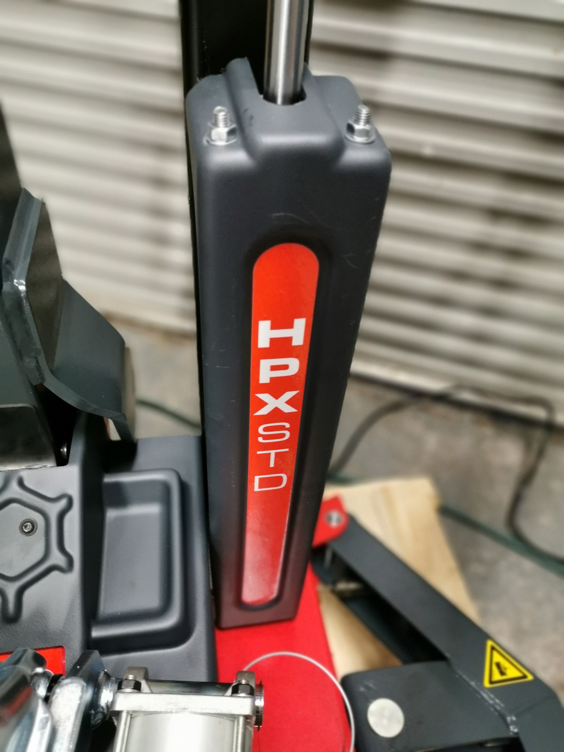 Build photos of a Cemb SMX60 fully automatic tyre changer with motoinverter (variable speed motor), 10" - 25" turntable, tubeless inflation and side assist helper arm.