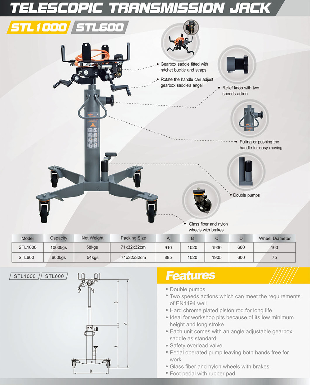 Features two-speed actions, fully compliant with EN1494 standards