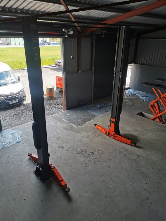Installation of an EAE 5 ton 2 post lift and an EAE 3.5 ton in floor scissor lift.